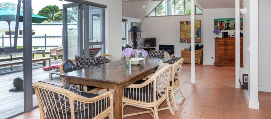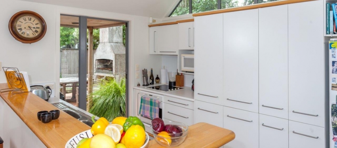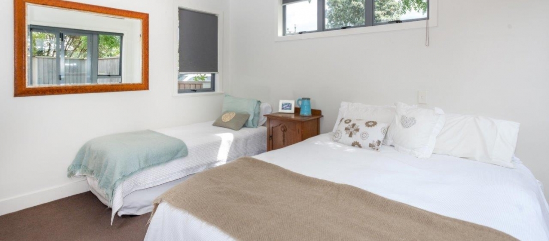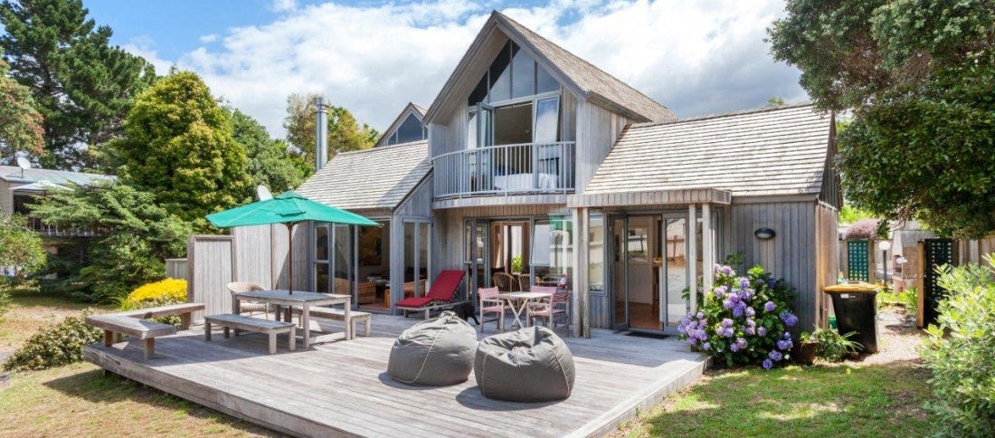 Featuring an open plan kitchen, dining and lounge on the lower level with seamless indoor/ outdoor flow to the large front deck with sea views through pohutakawa trees to Pauanui's renowned surf beach. The perfect private spot to soak up the sun and listen to the waves.
